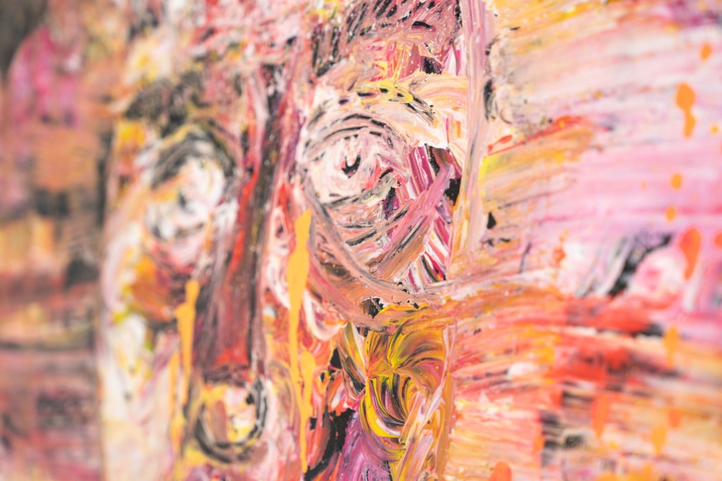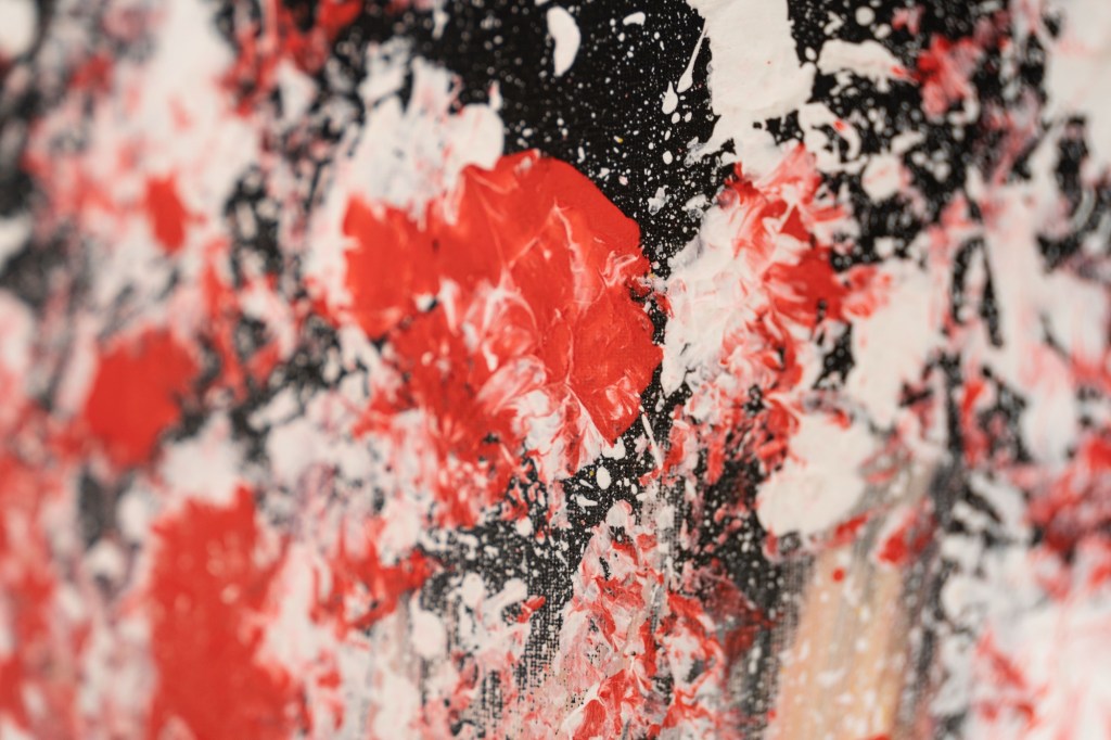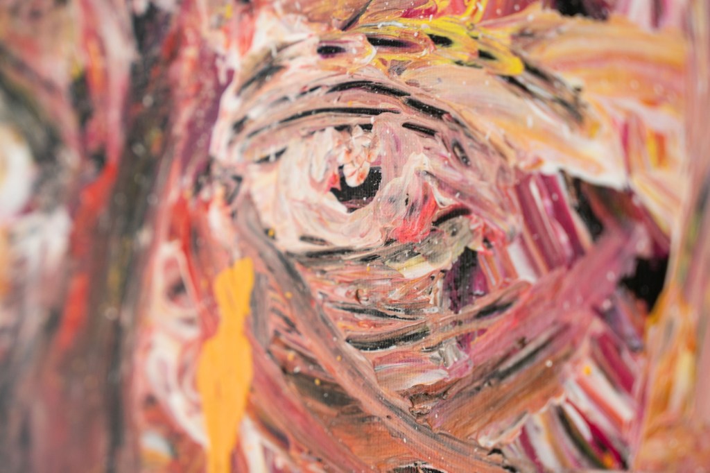 Die reiche Palette an warmen Rot-, Orange- und Rosatönen, die sich mit tiefen Schwarz- und Weißtönen vermischen, evoziert Themen wie Leidenschaft, Verletzlichkeit und Erneuerung. Die scheinbar chaotischen Pinselstriche sind zielgerichtet und spiegeln eine Reise durch widersprüchliche Gefühle wider – eine Suche nach Klarheit inmitten des Chaos.